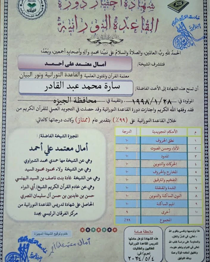 Noor Al Bayan is an educational program designed to teach the correct recitation of the Quran, focusing on Arabic phonetics and the rules of Tajweed. The course is typically structured to guide beginners, including children and non-Arabic speakers, in reading Arabic letters, words, and sentences accurately.